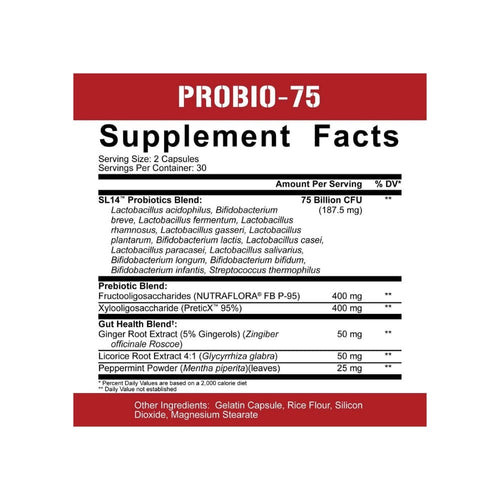 5% Nutrition introduces their first probiotic Probio-75. This product is designed to improve overall digestion and allow the body to absorb nutrients much easier. Probiotics are needed to restore healthy bacteria in the gut. Grab a bottle today!