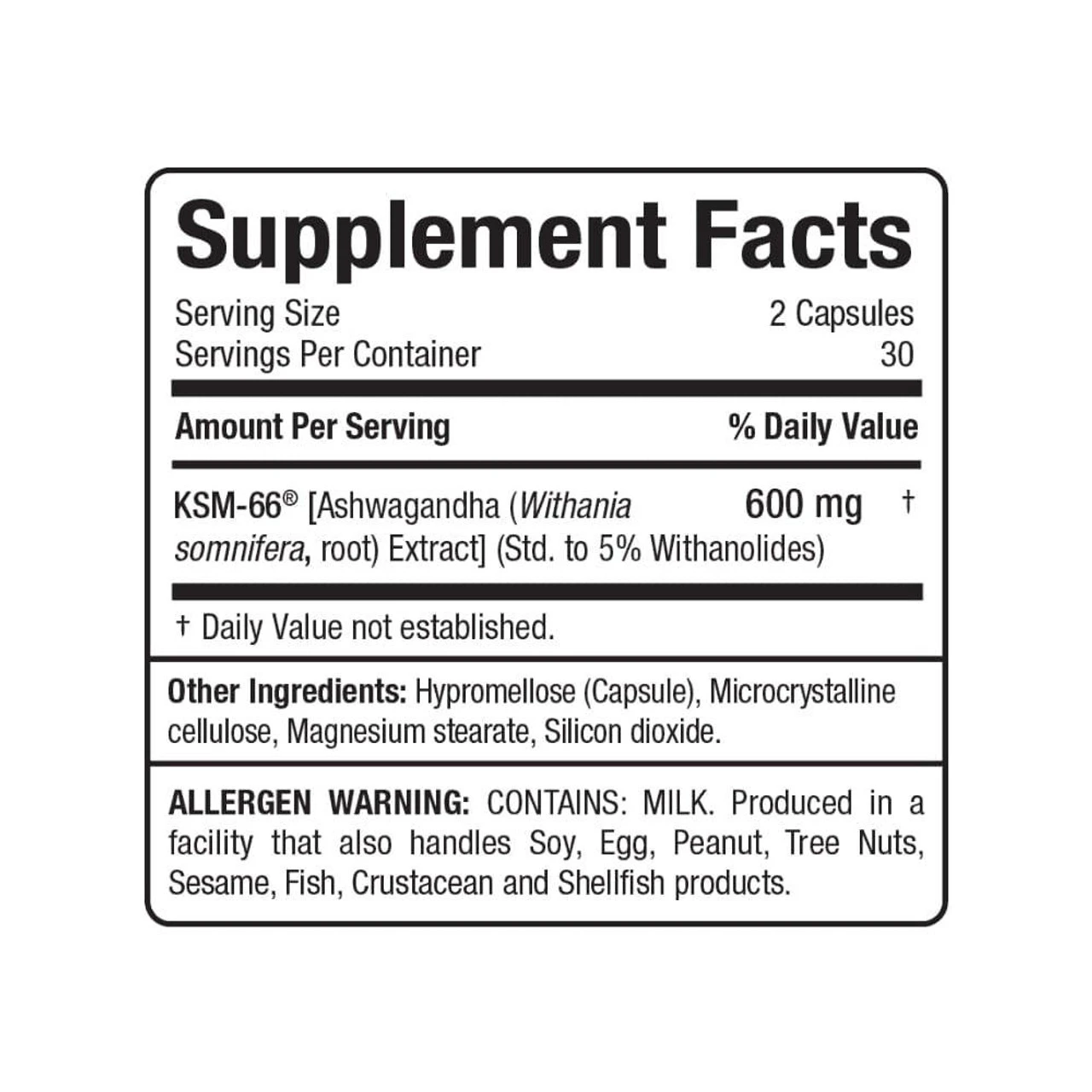 Allmax Ashwagandha KSM-66 60 Capsules Ingredients